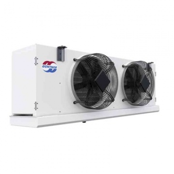 Complete range of refrigeration vaporizers Guntner, Roen-Est, ECO Luvata. Each air blower absorbs heat from the desired space to cool, being one of the most important elements of the refrigeration ...system. DTN Group offers you: slim cold air blower or ceiling vaporizer (ceiling vaporizer), cubic blower (suspended from the ceiling) and custom evaporators (wall and floor vaporizers), flow, delta t capacity and air jet length differing in capacity. The smallest evaporators are those suitable for showcases and refrigerators (showcase evaporator, refrigerator evaporator). The most powerful vaporizers with forced air circulation are generally between 10-20 kW, the industrial ones corresponding to even a few hundred kW. The lower the temperature (freezing or super-freezing), the slats will be placed at a greater distance so as not to freeze. We also provide accessories such as: fans, motor-fans, evaporator defrost heater / defrost cables, etc. The correct choice of evaporators (matching both the unit and the total cooling capacity) is essential, so that the evaporation / vaporization process corresponds to the required cooling.