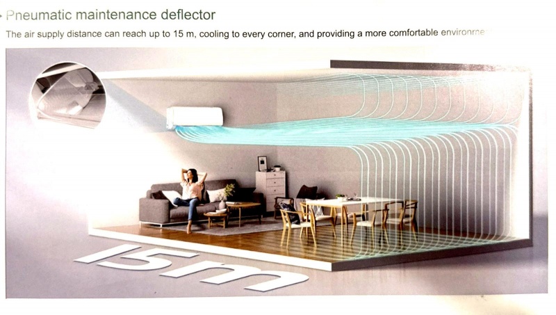 • Modelul ASW-H18E3G4/QGR3DI-C0 incorporează un minideflector pneumatic lateral pentru climatizare confortabila si flux aer de până la 15 m.