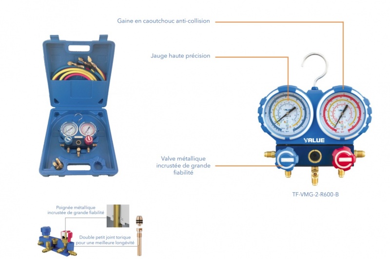 • Incluse în setul Value: ceasuri manometre freon R600, R600a, R290 și furtunuri de 120 cm.