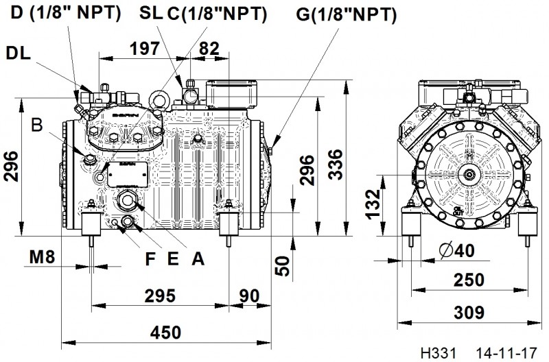 | -40°C | -35°C | -30°C | -25°C | -20°C | -15°C | -10°C | -5°C | 0°C | +5°C | +10°C | +15°C | +20°C | suction (asp.) | discharge (ref.) | |||||
