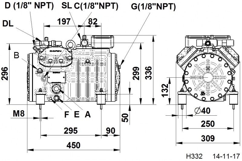 | -40°C | -35°C | -30°C | -25°C | -20°C | -15°C | -10°C | -5°C | 0°C | +5°C | +10°C | +15°C | +20°C | suction (asp.) | discharge (ref.) | |||||