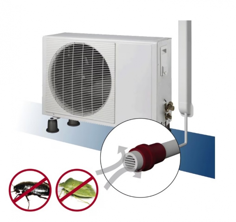 • Terminalul împiedică insectele să intre în tubul de evacuare a condensului și să-l blocheze.