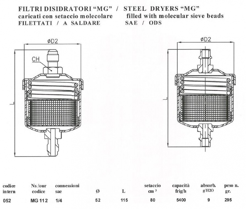 • Filtru uscator industrial și de uz comercial alcatuit din corp de oțel trasat, echipat cu sita moleculara sau cartuș solid.