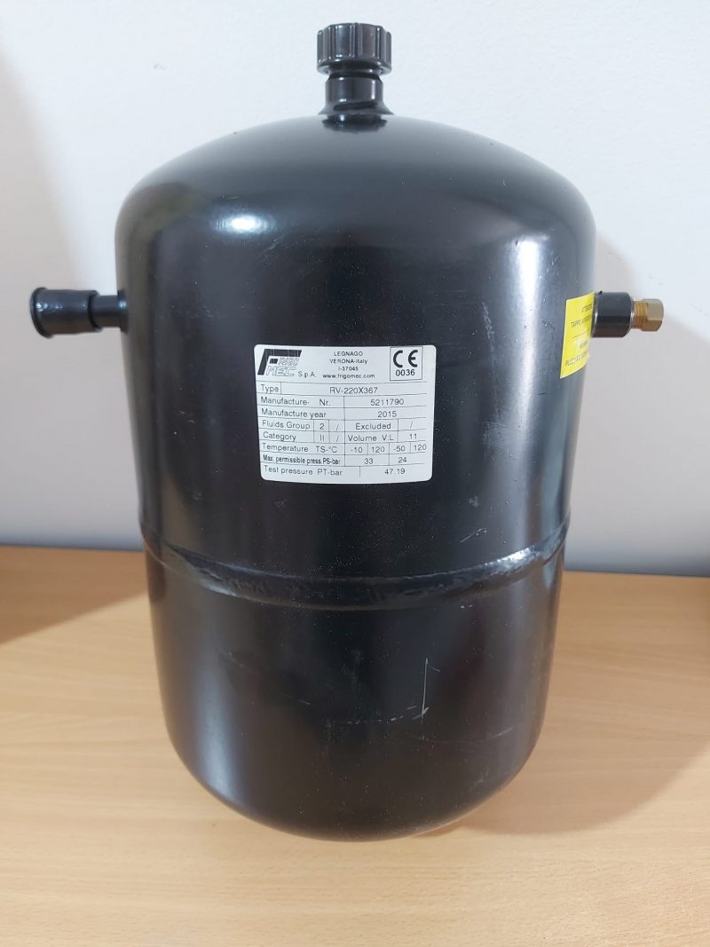 • Liquid refrigerant accumulator FrigoMEC RV180 11 liters for pressures of max. 33 bar* (example, R410A).