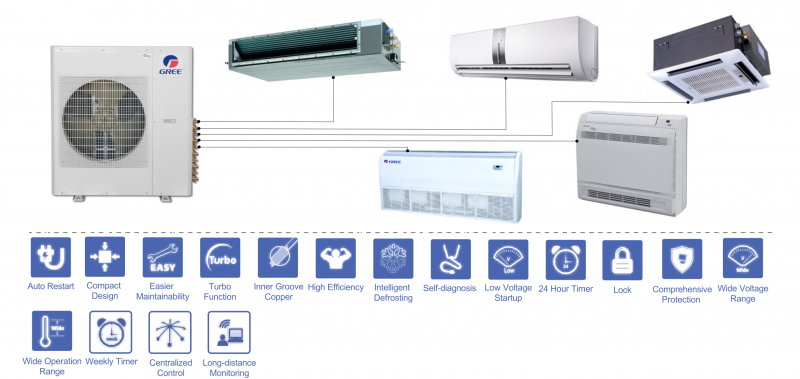 Multi inverter recommended for supporting the simultaneous and/or alternate use of several Free-Match indoor units