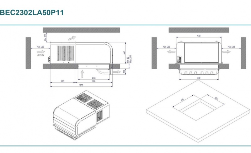 • Weight of cooling unit BEC2302LA50P11: 125 kg.
